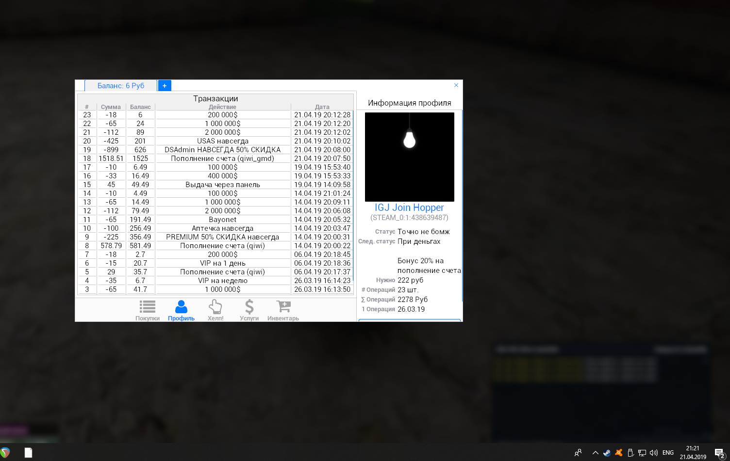 Раньше был PREMIUM. Прошу выдать мне мою купленную привелегию DSADMIN.