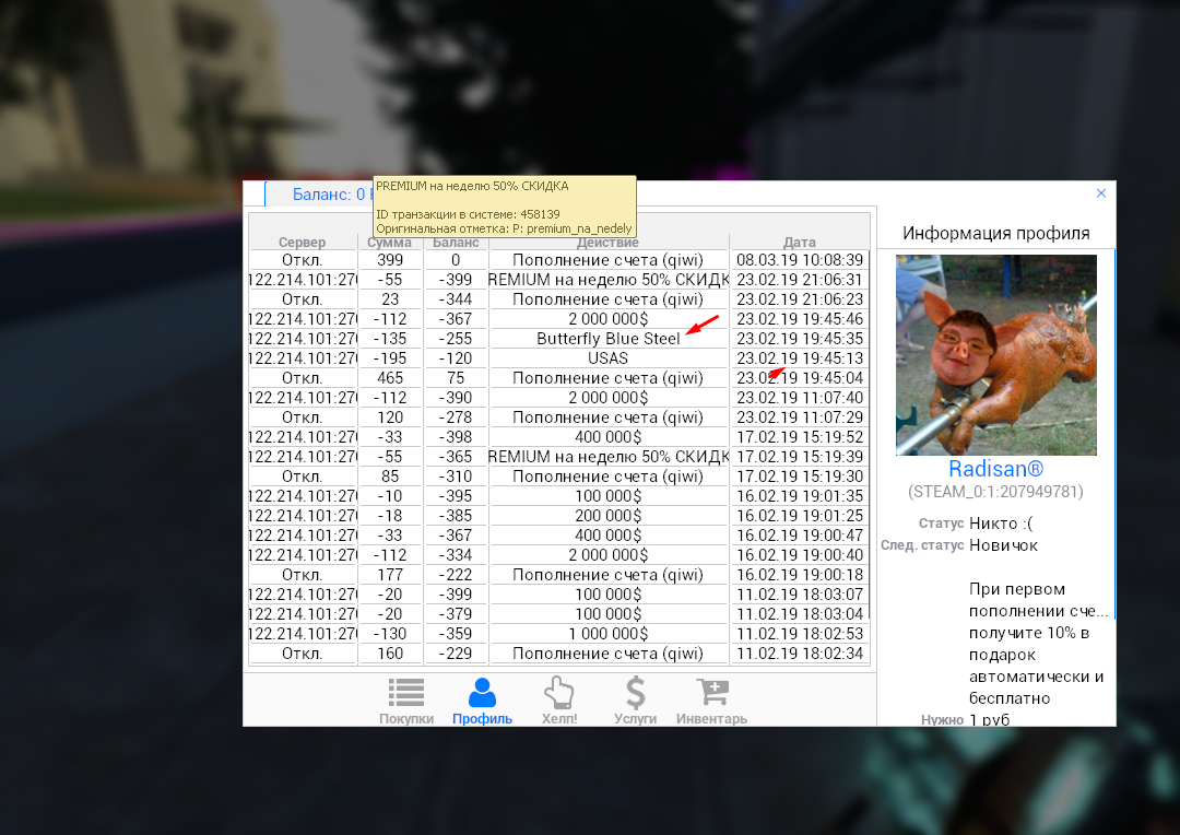 5.Я задонатил на сервер, вижу что деньги не приходят , вызвал админа он мне все рассказал что да как.