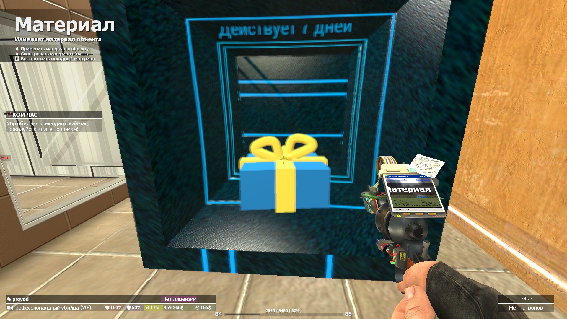 5. Ну, решил я за профессонального киллера сделать выставку что бы все "Поглазели", выстроил помещение, и пошел делать 3D2D Text, нажал куда хотел поставить - поставился. Потом написал в /ad ХУЛИГАН ПРОВОДОК Организовал выстовку где все могут "Поглазеть". Потом опять написал /ad На вип на 7 дней. Но уже не сработало, и у меня вылетело с причиной: "Чрезмерное Использование Команд"