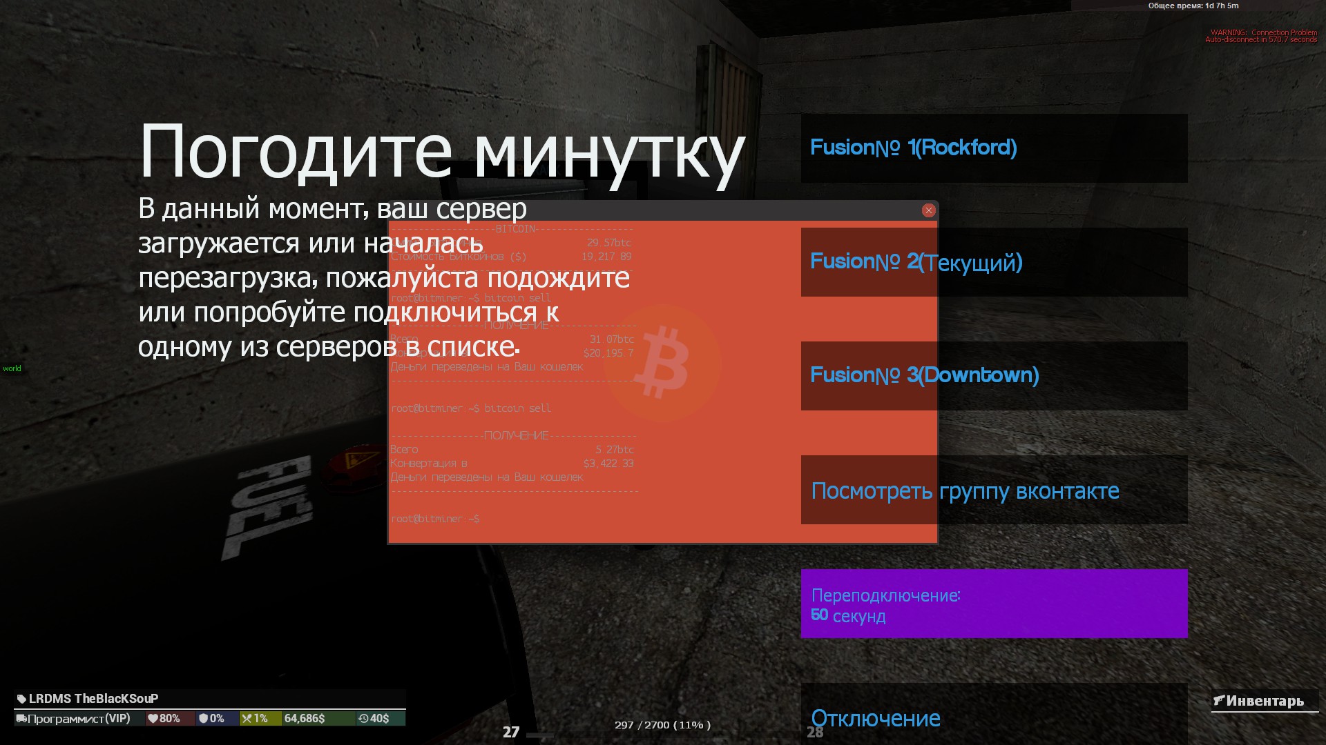 5. Пошел я ставить битраки, сижу, фармлю, отбил около 30к, как вдруг вылетает серв у всех, возможно рестарт.