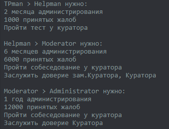 2 Я завтра прохожу набор на админа и тут такой вопрос, за что, как, когда идет повышение админа(спрашиваю сейчас потому что могу завтра забыть)
